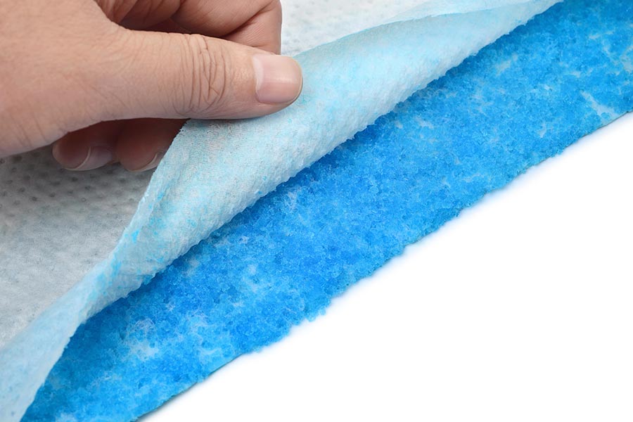 Super absorbent core rapidly draws in moisture, while polymer channels lock fluids away from the skin to keep it comfortably dry.